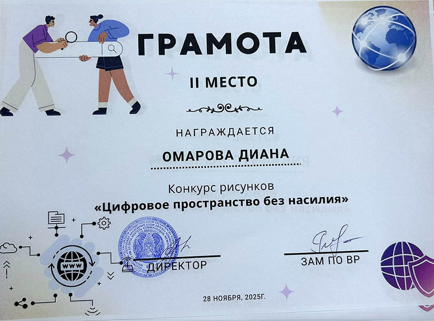 Байқау кіші буын оқушыларына интернеттегі қауіпсіз мінез-құлық ережелерін жақсы түсінуге көмектесті және олардың цифрлық технологияларды қолдануға жауапкершілікпен қарауын қалыптастырды. Үздік суреттер көрмеге қойылып, грамоталармен марапатталды. Көріністер: 15 |