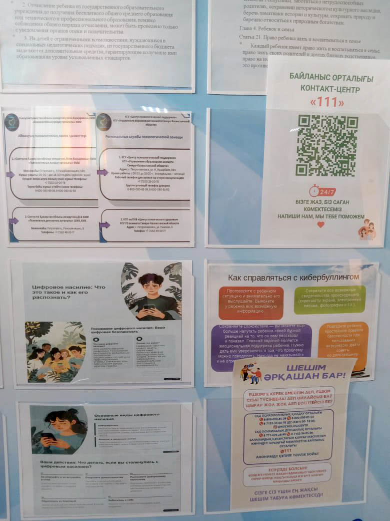 Стендтерде цифрлық зорлық-зомбылықтың түрлері мен белгілері туралы мәліметтер, сондай-ақ желідегі қауіпсіз мінез-құлық бойынша ұсыныстар орналастырылды Көріністер: 37 |