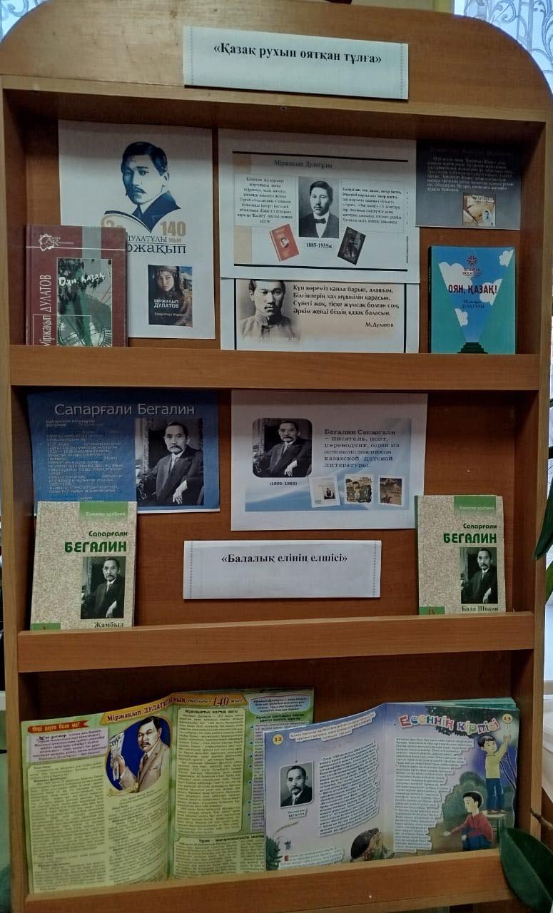 "№23 орта мектеп" КММ кітапханасында қазақ ақыны, жазушы, журналист, драматург, "Алаш-Орда" үкімет көшбасшыларының бірі Мыржақып Дулатовтың 140 жылдық мерейтойына арналған көрме, "Мыржақып Дулатов-қайраткер, ақын" және белгілі жазушы С. Бегалиннің туғанынҚосылған күні: 2025-11-13 |