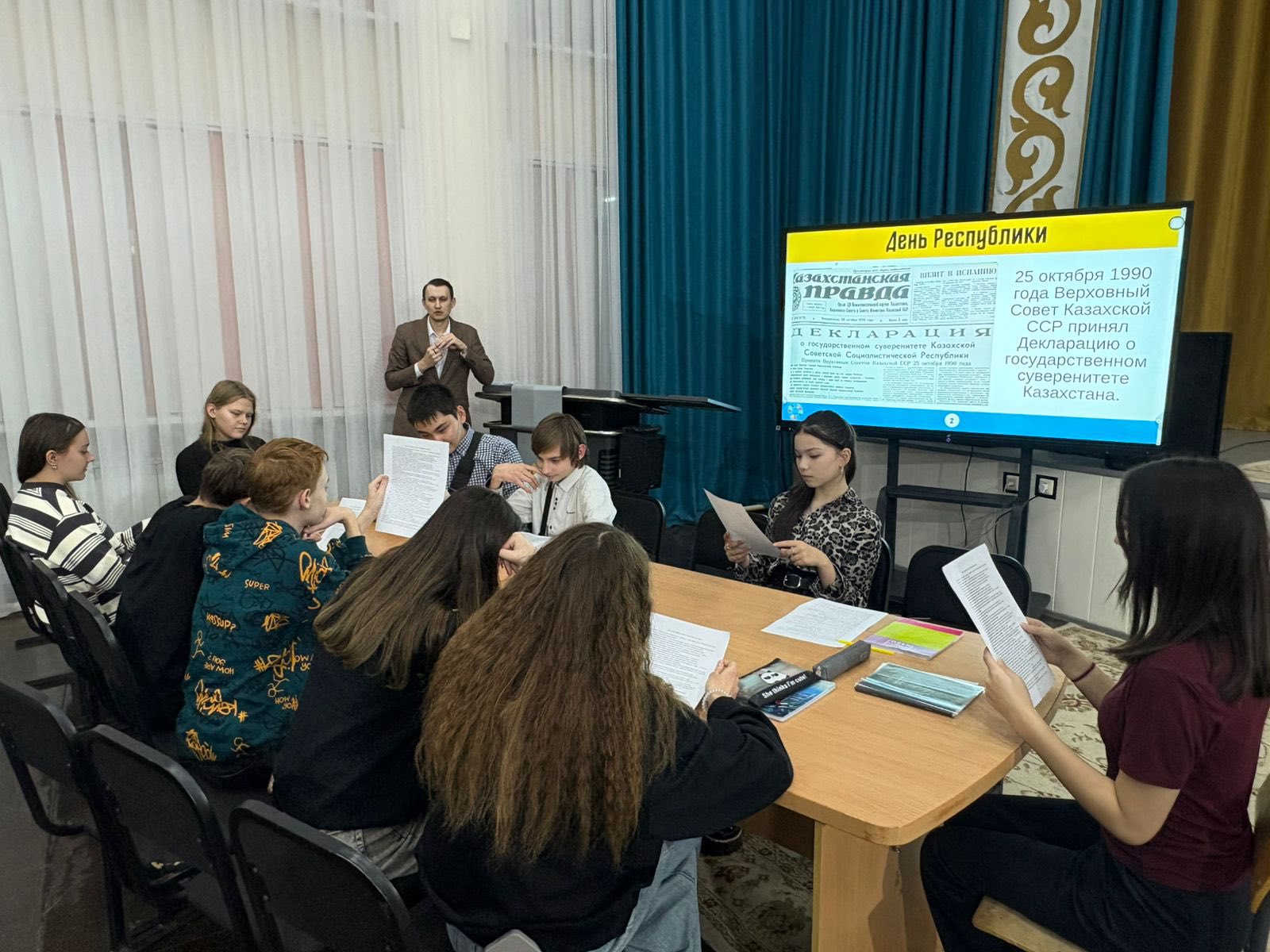 Сынып сағаты барысында оқушылар 1990 жылдың 25 қазаны Қазақстан тарихындағы маңызды күн — тәуелсіздікке және ұлттық сананы нығайтуға жол ашқан күн екенін білді Көріністер: 37 |