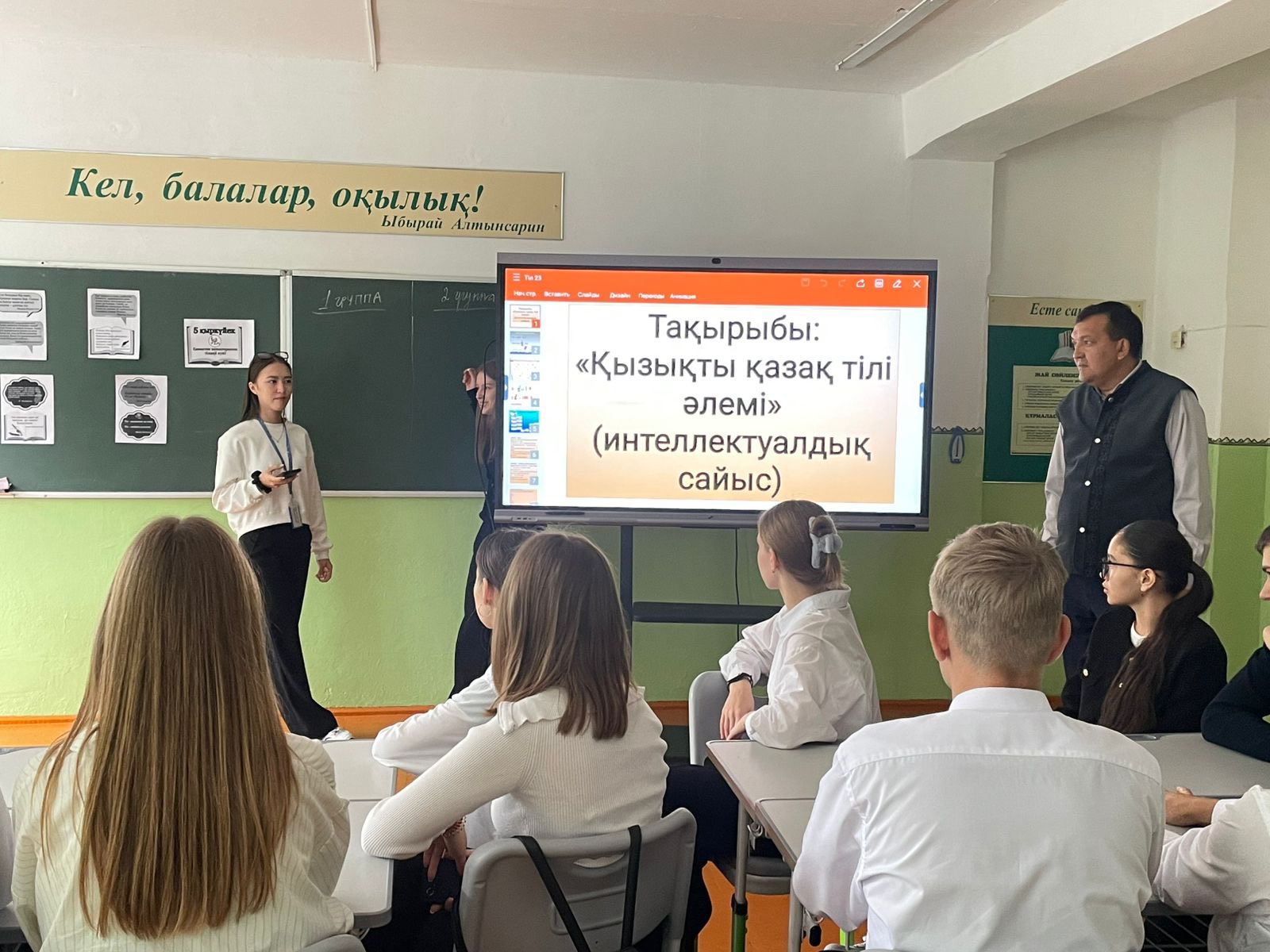 Сайыста оқушыларды ойын түрінде мемлекеттік тілде сөйлетуге тырыстық, көрініс түрінде де өнер көрсетті. Көріністер: 39 |