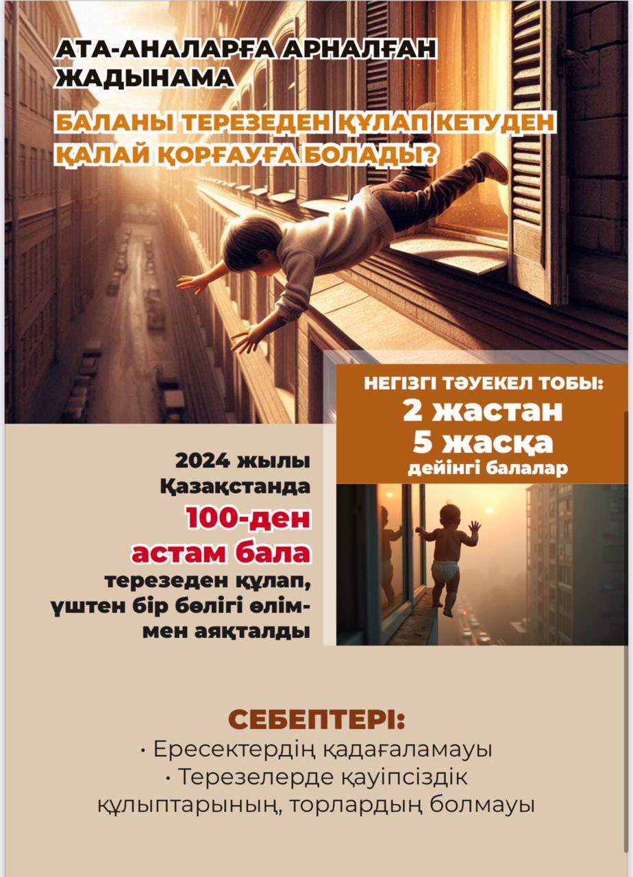 Бұл акцияның мақсаты - балалардың терезеден құлауының жазатайым оқиғаларының алдын алу, қазақстандық қоғамның назарын балалардың тұратын және оқитын жерлердегі қауіпсіздігін қамтамасыз ету мәселесіне аудару. Көріністер: 55 |