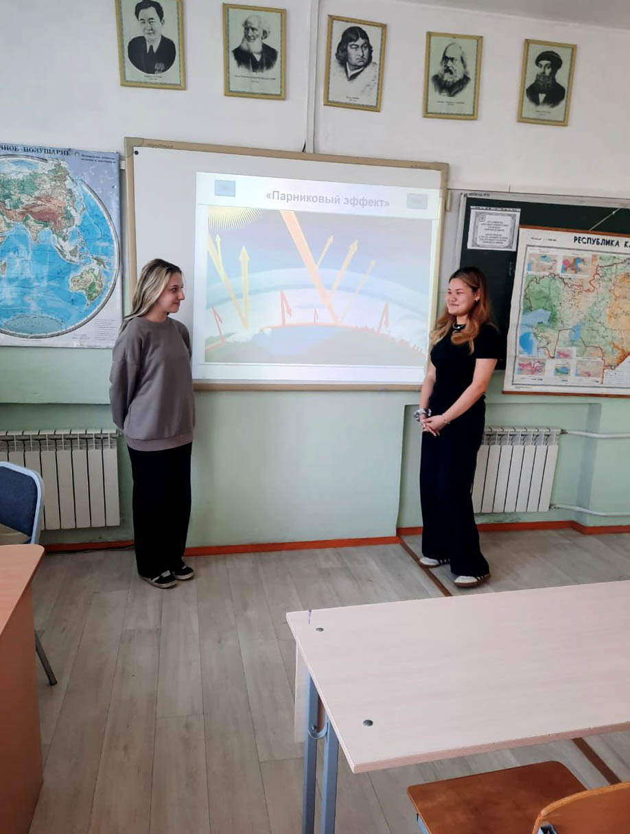 9-сыныптарда экология апталығы аясында география пәнінің мұғалімі Л. Д. Иванова "Климат өзгереді - бұл маған қатысты" іс-шарасын өткізді, онда планетадағы климаттың өзгеруі мәселесі талқыланды
