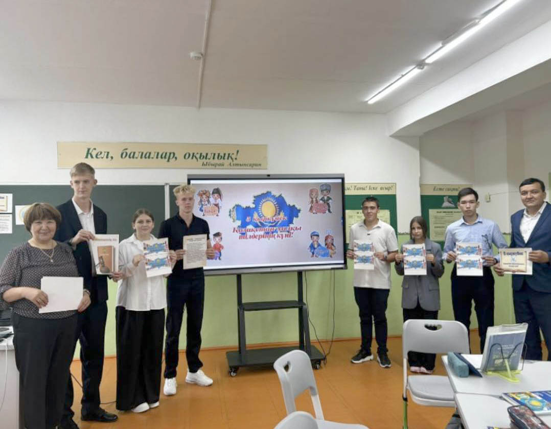Бүгін 11-қыркүйек күні «23 орта мектеп» КММ 11-сынып оқушылары арасында «Тіл – халықтың айнасы» атты интеллектуалды ойын өтті. Іс-шараны жоғары деңгейде ұйымдастырған ұстаздар Баилов А.И., Набиева Р.Ж. Іс-шара барысында оқушылар жылдам ойлау қабілеттерін, өз білімін, тіл байлығын, тапқырлығын, мақал-мәтелдерді білуін, көптілділігін және өнерін көрсетті. Жетістікке жеткен оқушылар: Исламгиреева Милана, Гульмятова Дильнара, Аманжолова Дильназ, Саду Гияр, Лучкин Артур, Белялова Дарина, Майданевич Надежда. Бұл оқушыларға «Қазақ тілі елінің құрметті азаматтары» марапаты берілді. Барлық қатысушыларға алғыс білдіреміз, жеңімпаздарды құттықтаймыз! Бұл іс-шара жас ұрпақтың қазақ тіліне деген сүйіспеншілігін арттырып, білімге құштарлығын нығайтты.