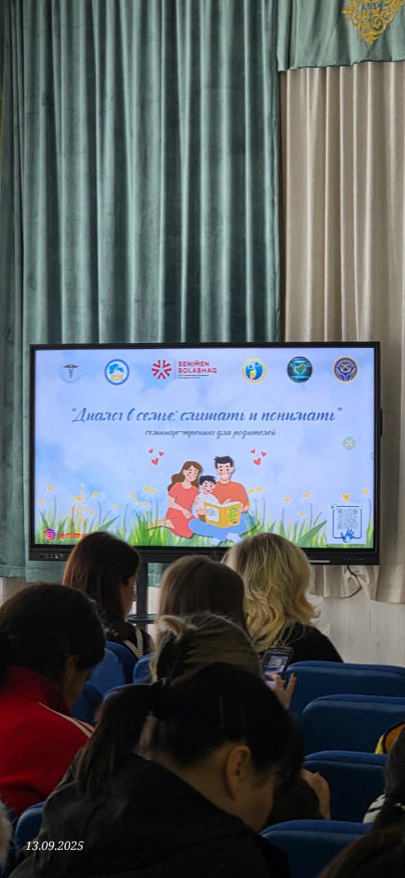 13 қыркүйекте "№ 23 орта мектеп" КММ 8 "Д" сынып ата-аналар комитетінің төрағасы" отбасындағы Диалог: есту және түсіну" атты ата-аналар жұртшылығына арналған семинар-тренингке қатысты