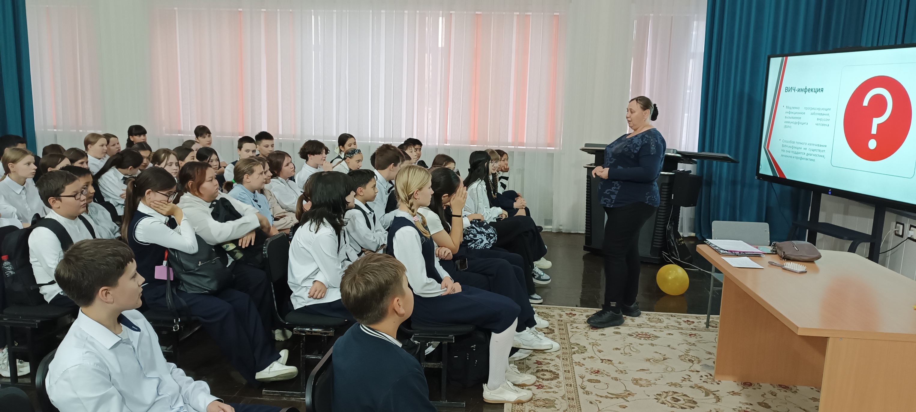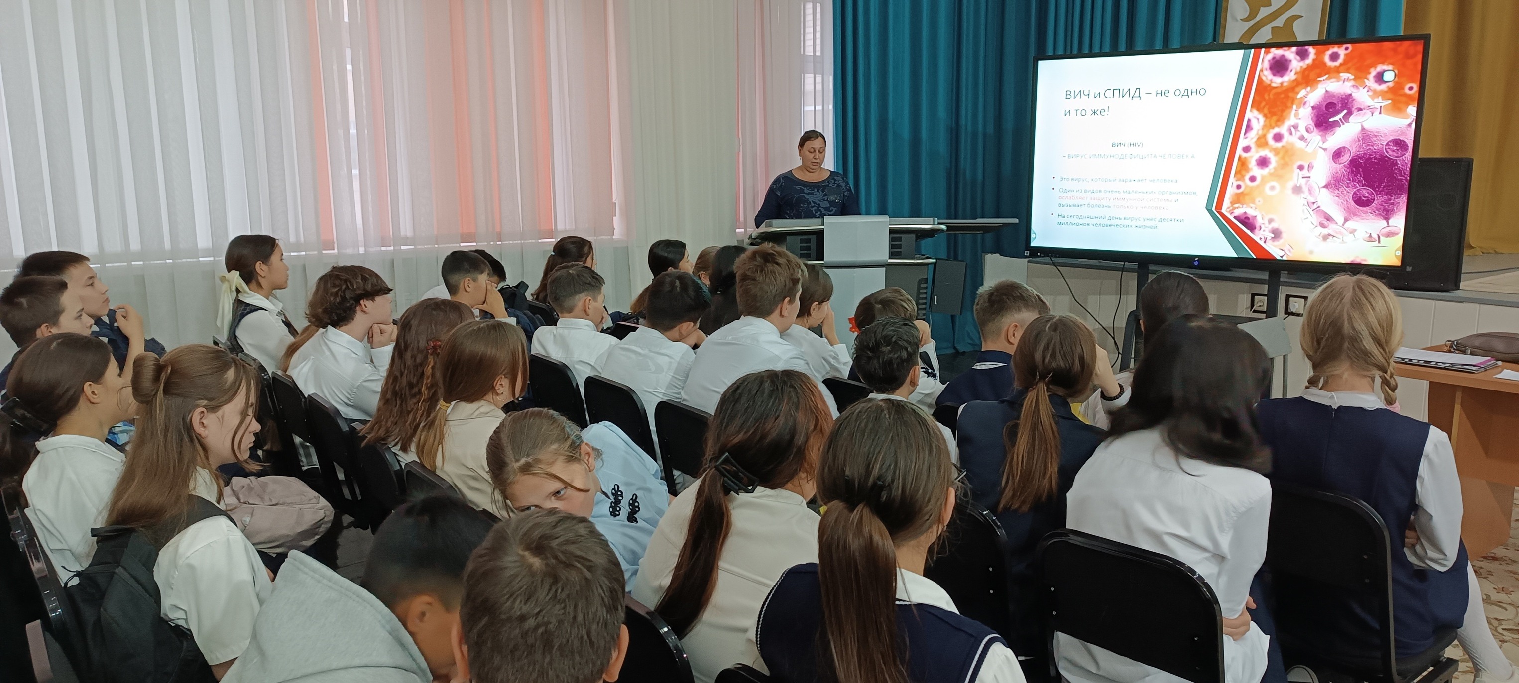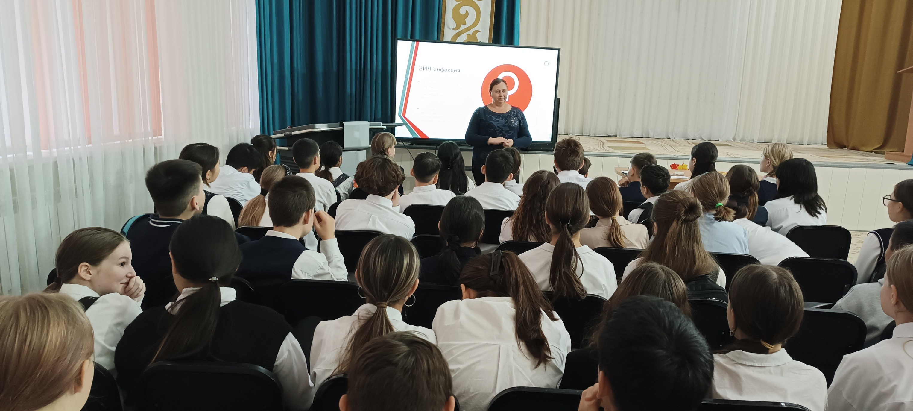 Бүгін №23 мектеп базасында орналасқан "Тұлпар" және "Жас Сарбаз" ҚДП тәрбиеленушілері Облыстық ЖИТС орталығының маманы Оксана Симухинамен кездесуге қатысты. Жасөспірімдер АИТВ-ның қалай берілетінін, қорғаудың қандай жолдары бар екенін, салауатты өмір салтын ұстану және өзіңізді және айналаңыздағы адамдарды қорғау неліктен маңызды екенін білді. Мұндай кездесулер жасөспірімдердің өз денсаулығына жауапкершілікпен қарауын қалыптастырады және қауіпсіз мінез-құлық мәдениетін тәрбиелеуге ықпал етеді. Педагог-ұйымдастырушы: Любых Н. П., педагог-ұйымдастырушы Мухамедин А. Б.