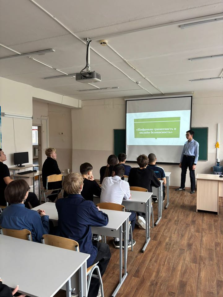 17 қарашада цифрлық сауаттылық және онлайн қауіпсіздік бойынша білім беру бағдарламасы аясында біздің мектепте 10 және 11 сынып оқушылары үшін информатика пәнінің мұғалімі Рүстем Маратұлы Тәшібаев ұйымдастырған шеберлік сыныбы өтті. Іс-шараның мақсаты-жасөспірімдерді цифрлық сауаттылықтың негізгі қағидаттарымен таныстыру және олардың Интернеттегі қауіпсіздік туралы хабардарлығын арттыру.