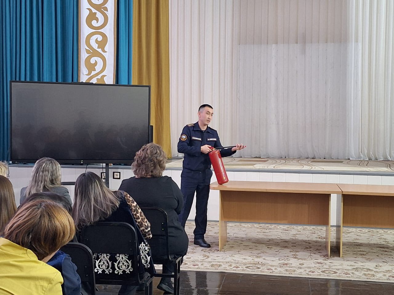 Кездесу барысында Саян Егінбайұлы Төтенше жағдайлар туындаған кездегі іс-қимыл тәртібін, уақтылы эвакуациялауға қойылатын талаптарды, алғашқы өрт сөндіру құралдарын пайдалану қағидаларын, сондай-ақ қауіп көздерін анықтаған кездегі өзара іс-қимыл алгоритмін еске салды. ТЖ жағдайында білім беру мекемесі қызметкерлерінің міндеттеріне, жауапты тұлғаларды ақпараттандыру реттілігіне және оқушылардың қауіпсіздігін қамтамасыз етуге ерекше назар аударылды. Маман эвакуация кезінде кездесетін типтік қателіктерді егжей-тегжейлі түсіндіріп, олардың алдын алу бойынша практикалық ұсыныстар берді. Оқыту мектеп қызметкерлерінің штаттан тыс жағдайларда әрекет етуге дайындық деңгейін арттыруға және білім беру ортасында қауіпсіздікті қамтамасыз ету дағдыларын жақсартуға ықпал етті. ![]() ![]() ![]() ![]() |