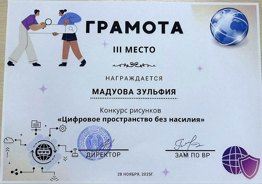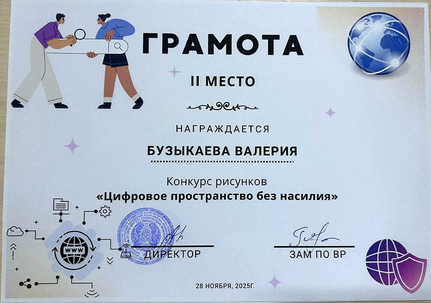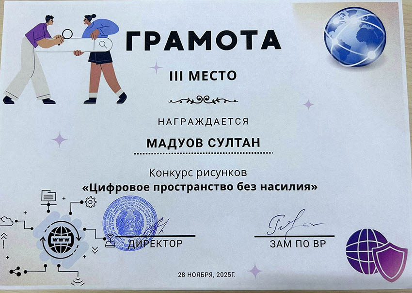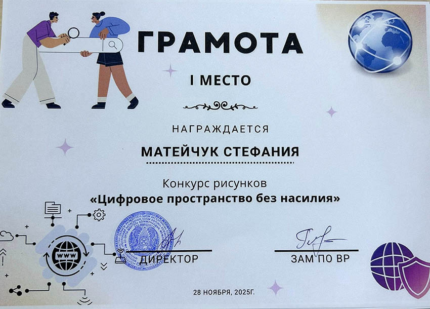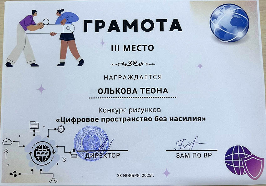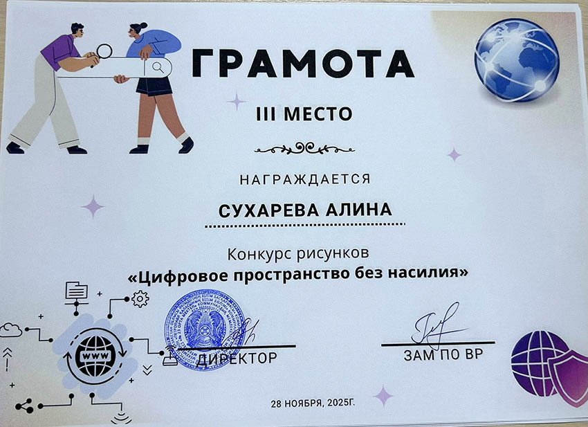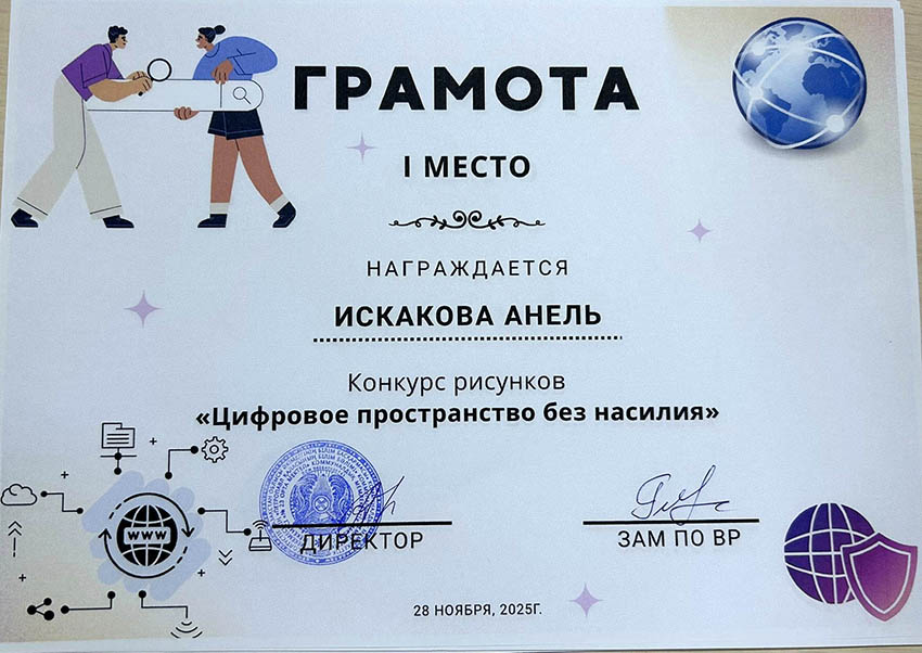 Балалар сыпайы қарым-қатынастың маңыздылығын, кибербуллингке жол бермеуді, жеке ақпаратқа ұқыпты қарау қажеттілігін және желідегі қауіпті тани білуді суреттеді. Жұмыстар жарқын, түсінікті және балалардың цифрлық қауіпсіздікке деген көзқарасын бейнелейтін болып шықты. Байқау кіші буын оқушыларына интернеттегі қауіпсіз мінез-құлық ережелерін жақсы түсінуге көмектесті және олардың цифрлық технологияларды қолдануға жауапкершілікпен қарауын қалыптастырды. Үздік суреттер көрмеге қойылып, грамоталармен марапатталды. ![]() ![]() ![]() ![]() ![]() ![]() ![]() ![]() |
