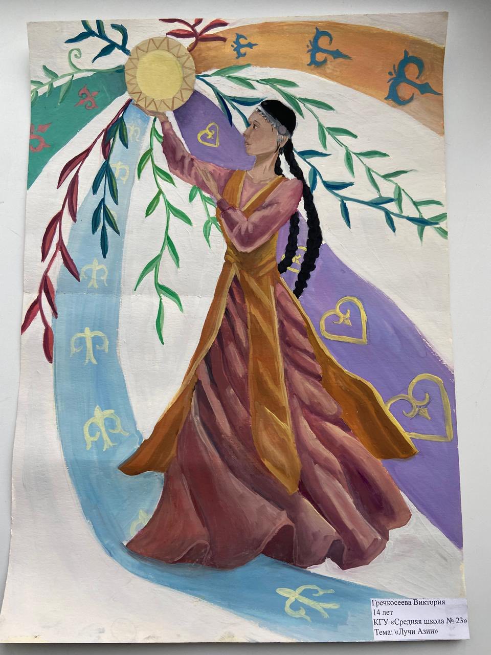 "№23 орта мектеп" КММ 8 сынып оқушысы Виктория Гречкосееваны "Азия сәулелері" қалалық сурет байқауында 1 орынмен құттықтайды