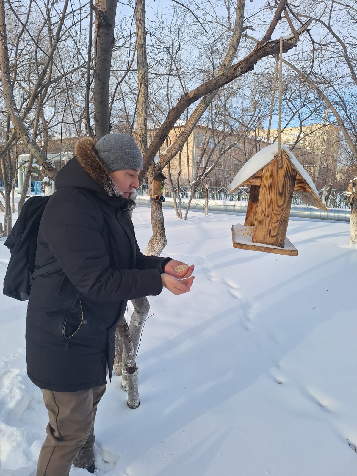 22 қаңтарда біздің қалада қыстың қатты ауа-райы — көшеде 30 градус аяз болды. Осы кезеңде №23 мектептің барлық оқушылары қашықтықтан оқытылады, ал сабақтар онлайн форматта өтеді. Онлайн сабақтар аяқталғаннан кейін мұғалімдер мен мектеп қызметкерлері осындай аязда адамның көмегінсіз аман қалу қиынға соғатын құстарды тамақтандыру үшін көшеге шықты. Бұл қадам қоршаған әлемге шынайы қамқорлық пен жауапкершіліктің көрінісі болды. Тіпті қатты суық және қарбалас күн жағдайында да мұғалімдер құстар үшін мұндай қолдау өмір сүру үшін шешуші болуы мүмкін екенін түсініп, игі істерге уақыт бөлді. Бұл мысал еске салсын: кішкентай әрекеттер өмірді сақтап, әлемді жылы ете алады, тіпті терезенің сыртында отыз градус аяз болса да.