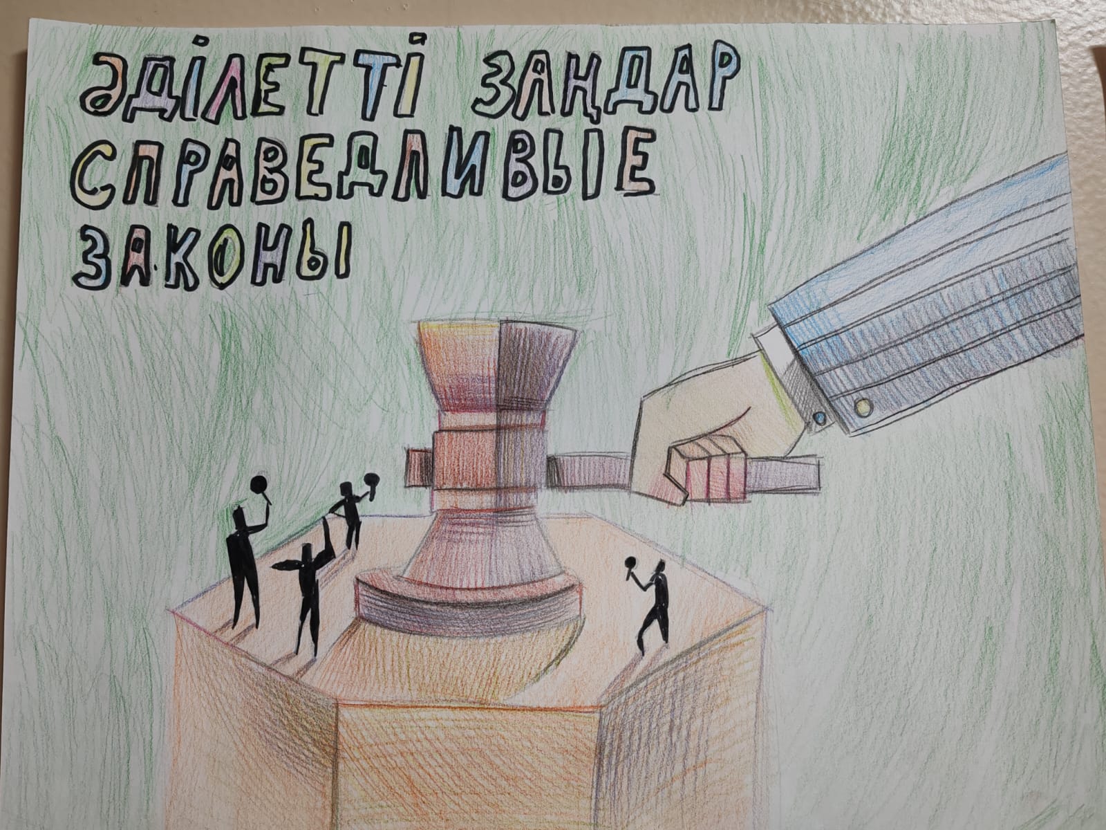 "Заң және тәртіп" айлығы аясында мектепте "заң балалардың көзімен" суреттер байқауы өткізілді. Қатысушылар бастауыш сынып оқушылары болды, олар көркем шығармашылық арқылы заң, әділеттілік, құқықтар мен міндеттер туралы түсініктерін білдірді.