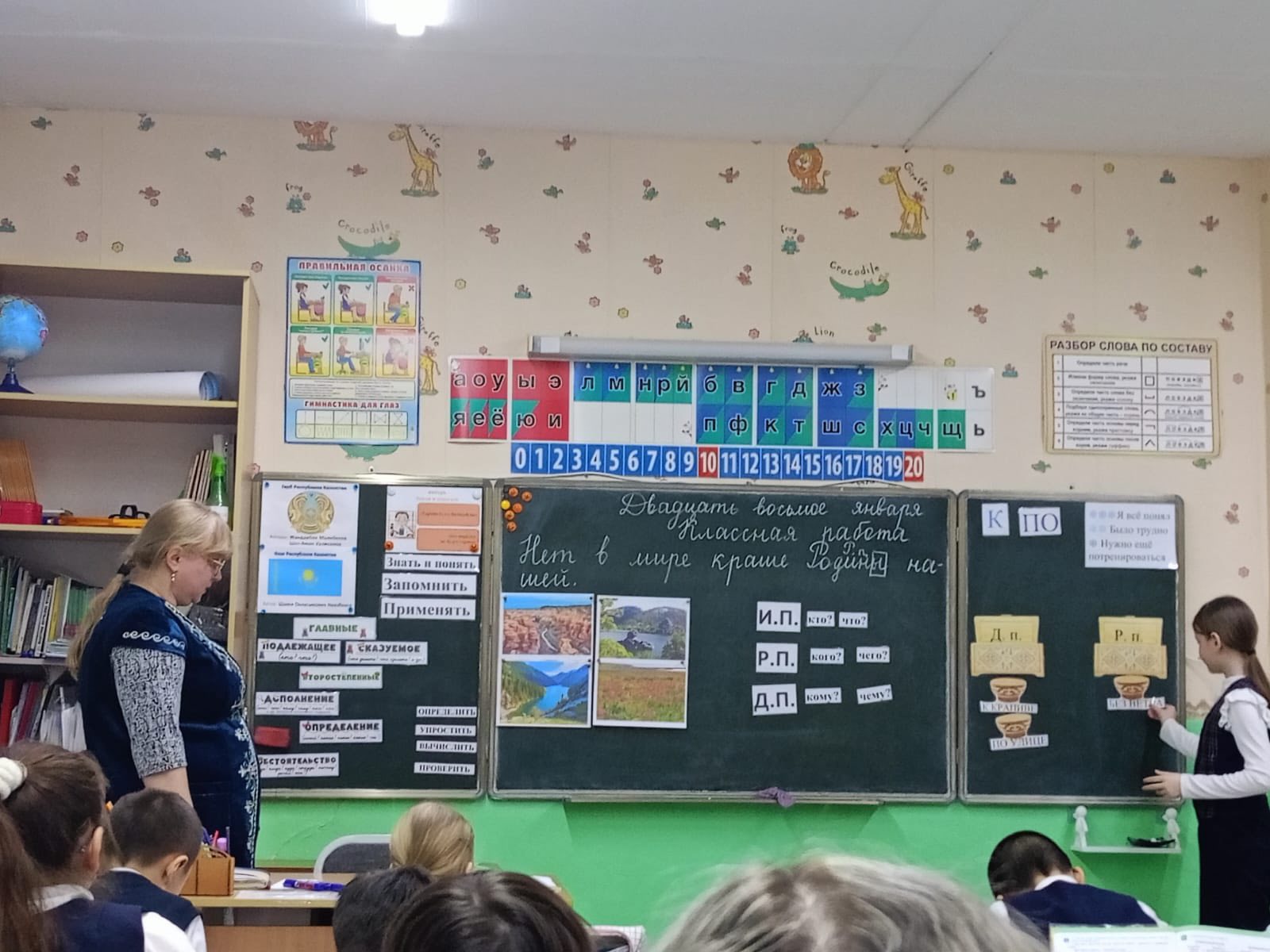 Бастауыш сыныптар онкүндігі аясында бүгін 3 "Б" сыныбында "зат есімнің Генитативті және деративті жағдайы" тақырыбында ашық Орыс тілі сабағы өтті