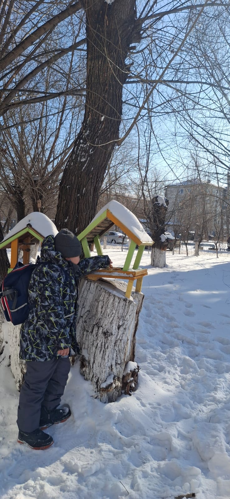 25 ақпанда № 23 орта мектептің 4-сынып оқушылары «Қыста құстарды тамақтандыр» қайырымдылық акциясына белсенді қатысты