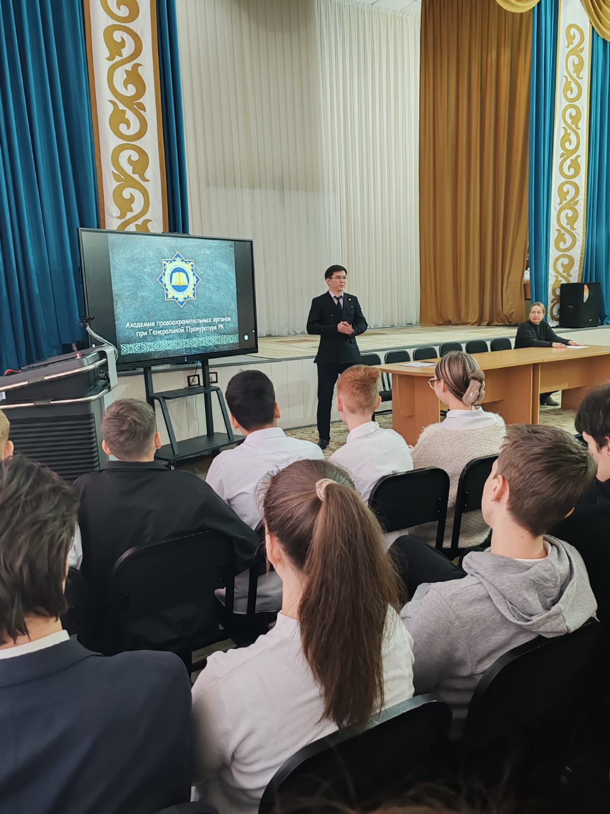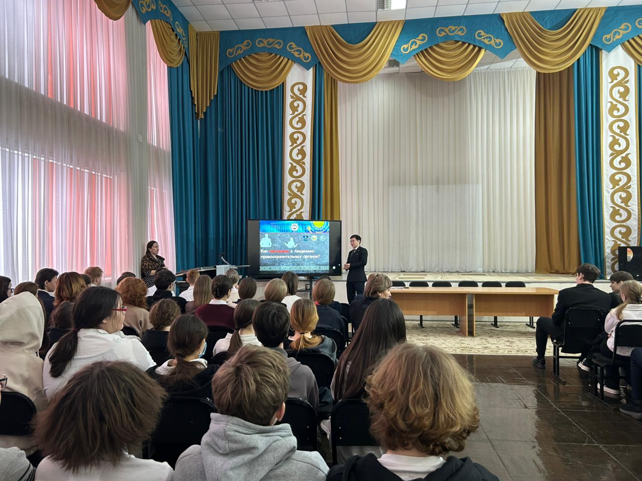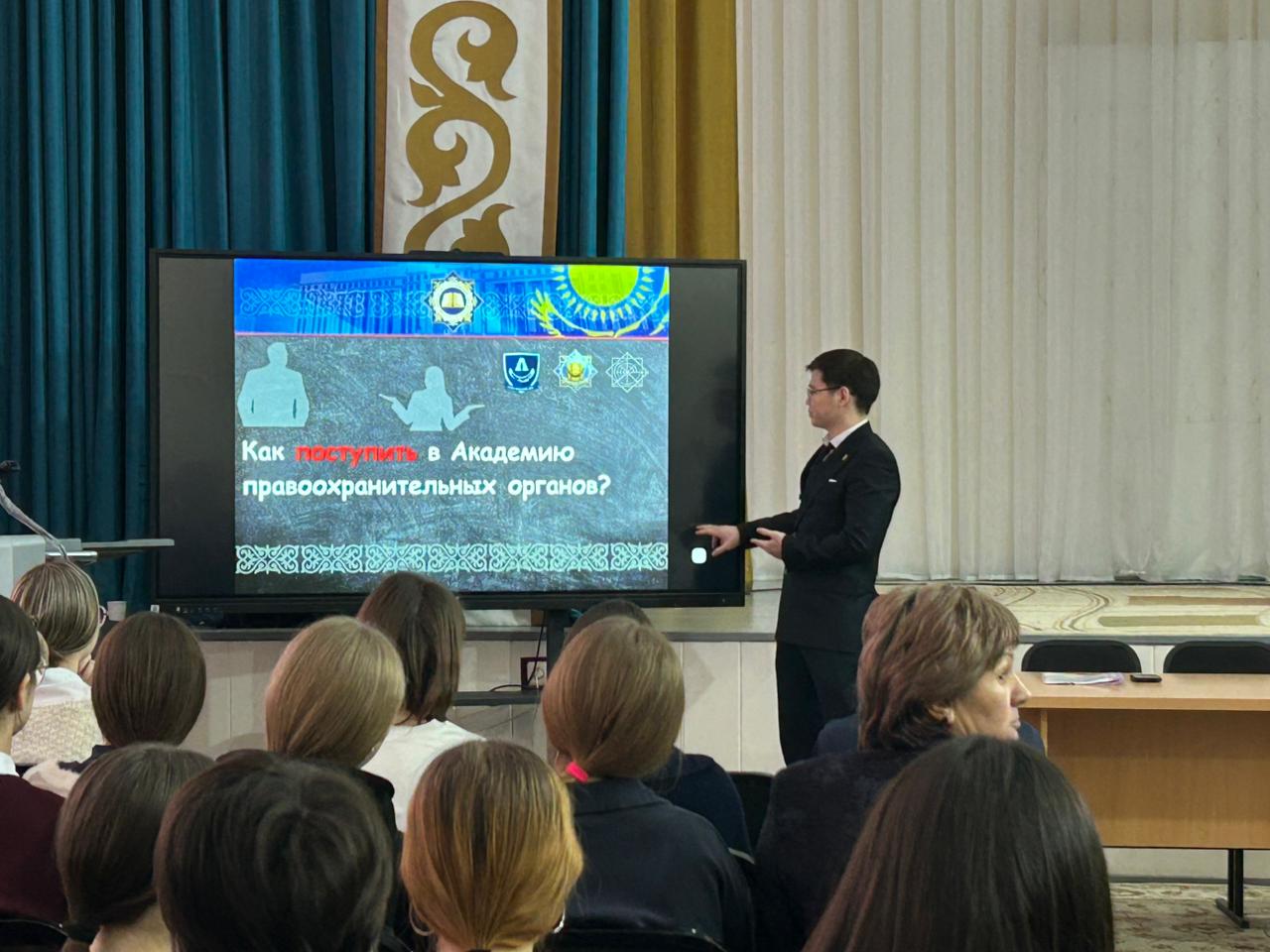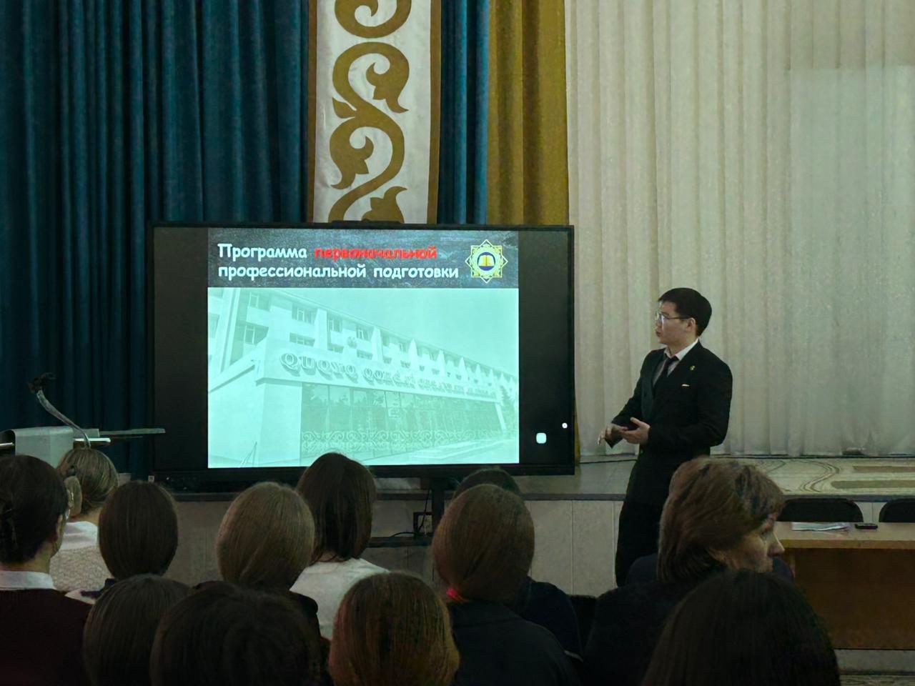 В рамках месячника «Закон и порядок» в школе состоялась встреча с представителем прокуратуры г. Петропавловск Өміртас Я.А.. В ходе встречи он рассказал обучающимся об особенностях работы прокурора, основных направлениях деятельности и профессиональных обязанностях.